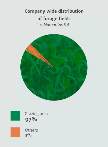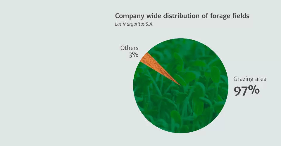 46,000 hectares dedicated for cattle to graze. Native and introduced grass species adapted to our environment are combined throughout the life-cycle of the animals. This production system explains the excellent flavor of Argentine meat.